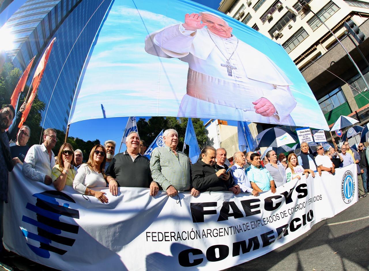 En el marco del Día del Trabajador y la Trabajadora, la Federación Argentina de Empleados de Comercio y Servicios (FAECyS) marchó el 1º de Mayo por la mañana junto a la Confederación General del Trabajo (CGT).